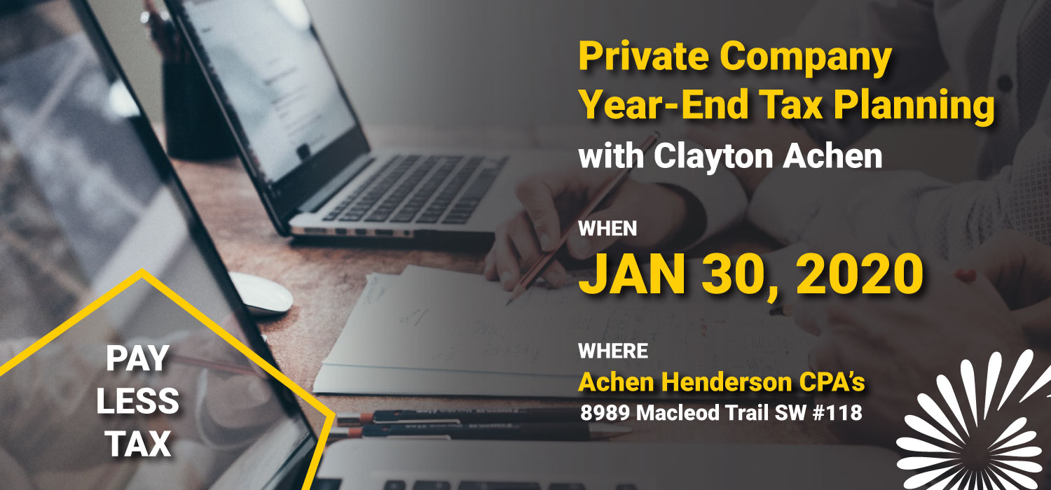 Our first event is Private Company Year-End Tax Planning on January 30th! This event will cover the basics of private corporation tax. Tax deadlines, what’s deductible, what type of records to you need to hang on to, should you pay yourselves salaries or dividends, should you contribute to your RRSP, what is a ‘shareholder loan’, and more… This is event was designed for Calgary business owners who want to know more about their business financials and how to pay less tax as an Alberta business! As private business advocates and professional accountants, we are here to support you and share our expert knowledge around tax and compliance in the Canadian tax system!